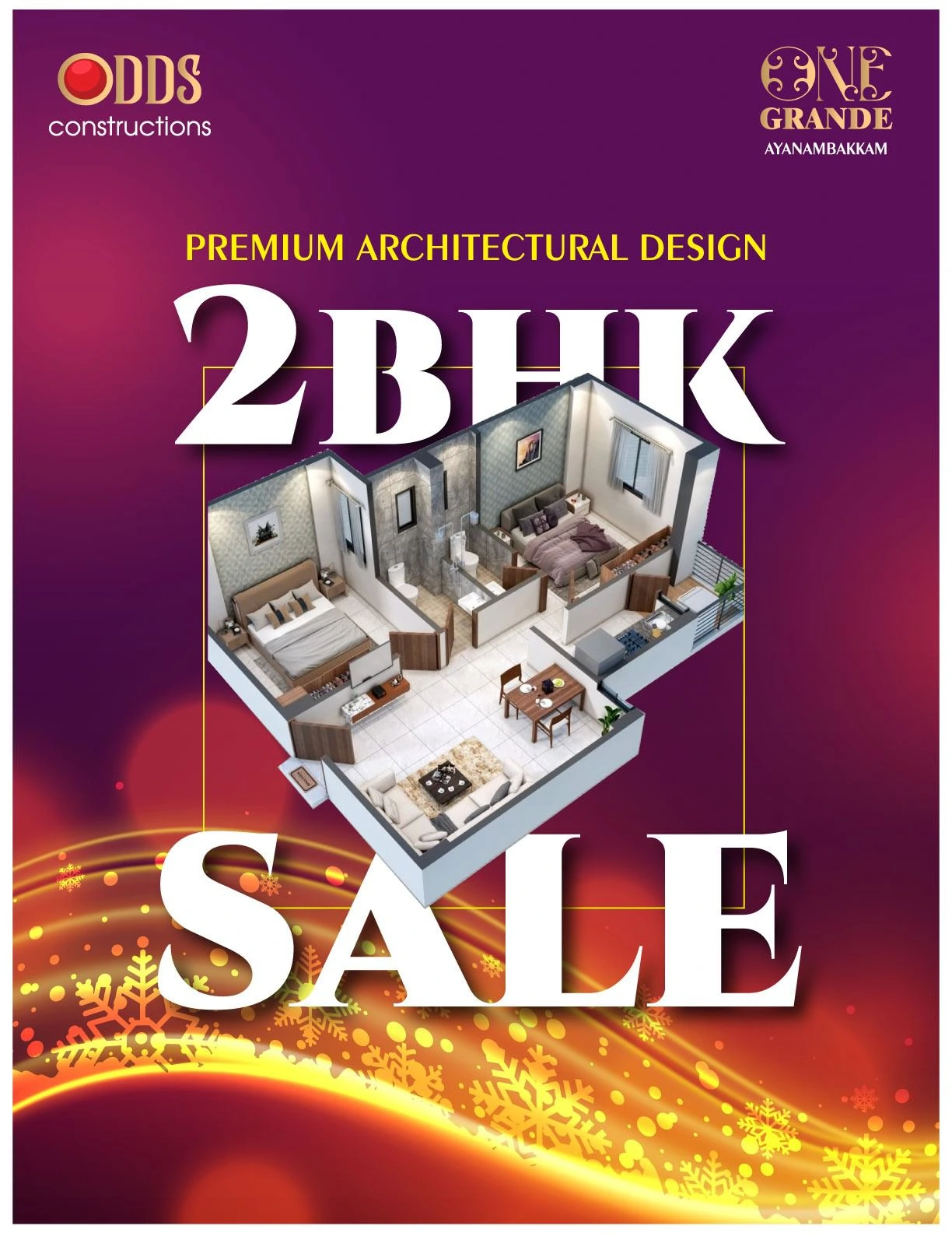 One Grande Ayanambakkam is a premium residential project developed by Odds Constructions, offering well-planned 2 BHK apartments designed for modern urban living. The project focuses on smart space utilization, elegant interiors, and quality construction to provide residents with comfort, convenience, and long-term value.